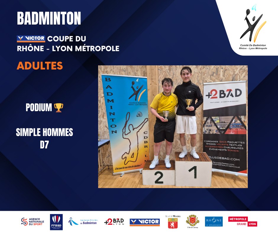 🥇 𝘠𝘰𝘩𝘢𝘯𝘯 𝘔𝘐𝘕𝘌𝘡 est le grand vainqueur du double homme série 4 associé à Lucas DE SOUSA du Badminton Vénissieux Sud Est – BVSE Officiel