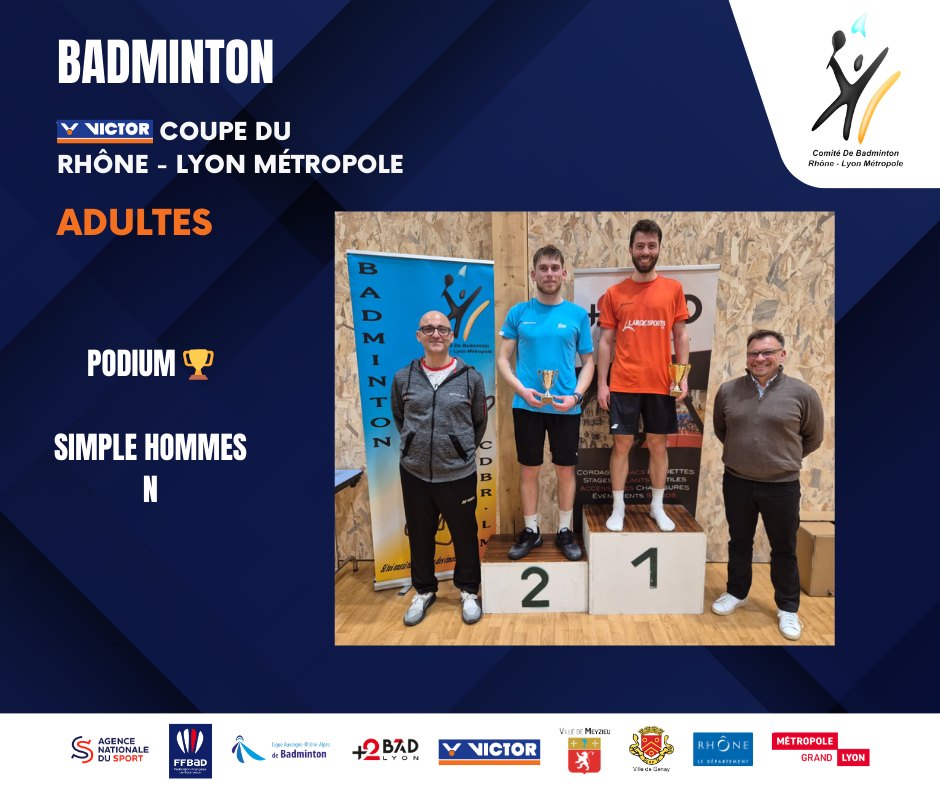 🥇🥉 Nicolas Bonnet remporte le tableau du simple homme et 1/2 finale pour Maxime Riard et Adrien Bonefons . Le BACLY en force dans ce tableau 💪🥉 1/2 finale à nouveau pour Maxime associé à Jean-Baptiste Chang 😎