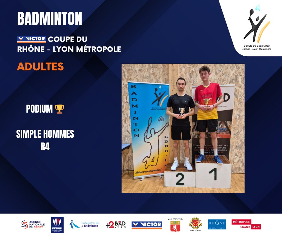 🥈 Une belle place de finaliste en simple série 4 pour Dorian CHAMPAGNAT, encadrant de nos petits jeunes du jeudi soir à la Halle Vivier Merle.