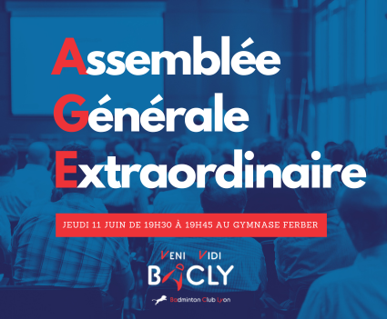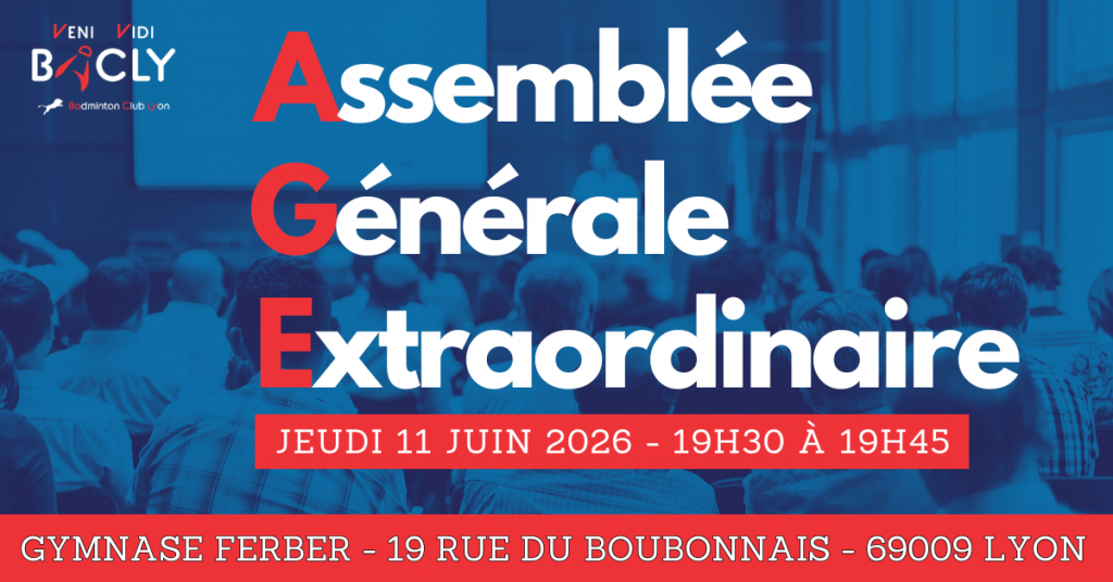 L’équipe du Badminton Club de Lyon vous invite à son Assemblée Générale Extraordinaire