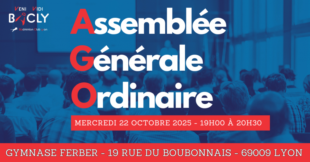 L’équipe du Badminton Club de Lyon vous invite à son Assemblée Générale Ordinaire