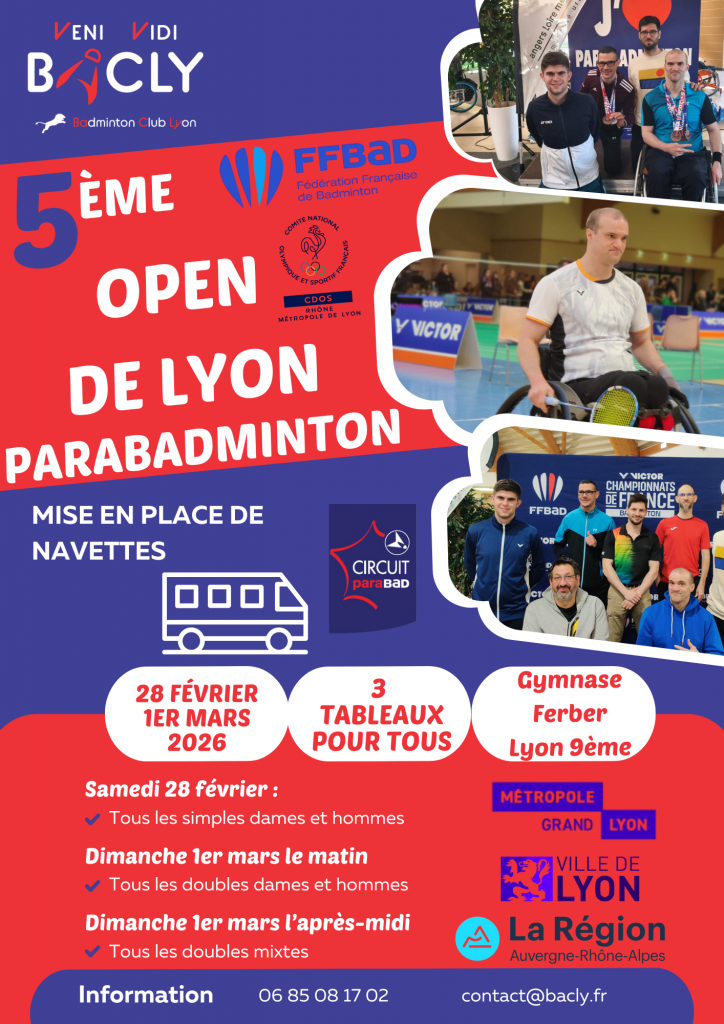 Le Badminton Club de Lyon est très heureux de vous inviter à la 5ème édition Internationale de l’Open ParaBadminton de Lyon