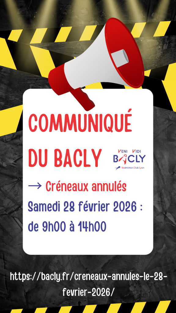 ⛔ Les créneaux « Jeunes et Adultes » de de 9h00 à 14h00 seront annulés ce samedi 28 février 2026
