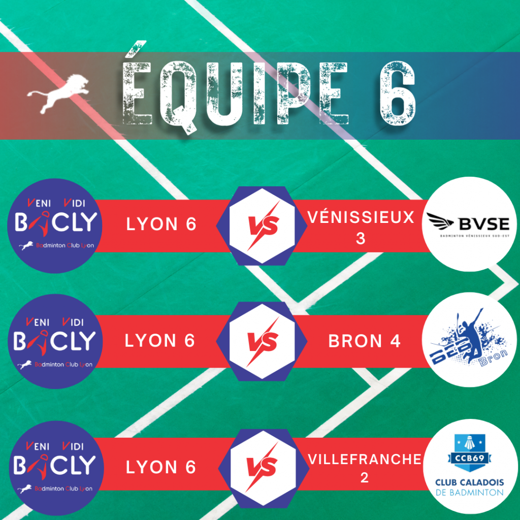 Les adversaires de l’équipe 6 du BACLY sont :