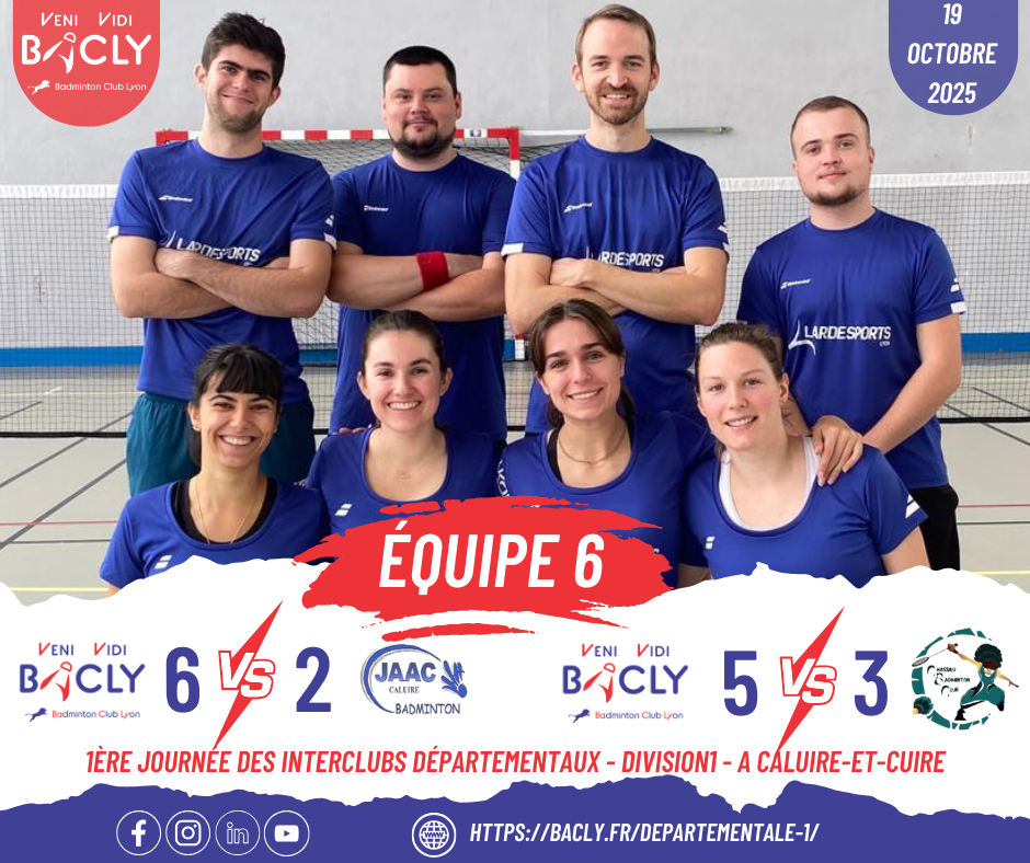 L’équipe 6 du Badminton Club de Lyon sera à nouveau en Départementale 2 la saison 2024 / 2025 !