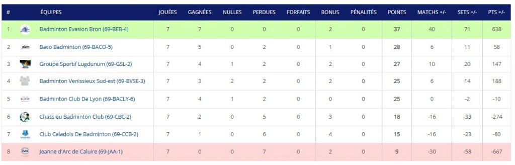 ❌ Défaite 1 à 7 contre l’équipe 1 de la JAAC Badminton de Caluire