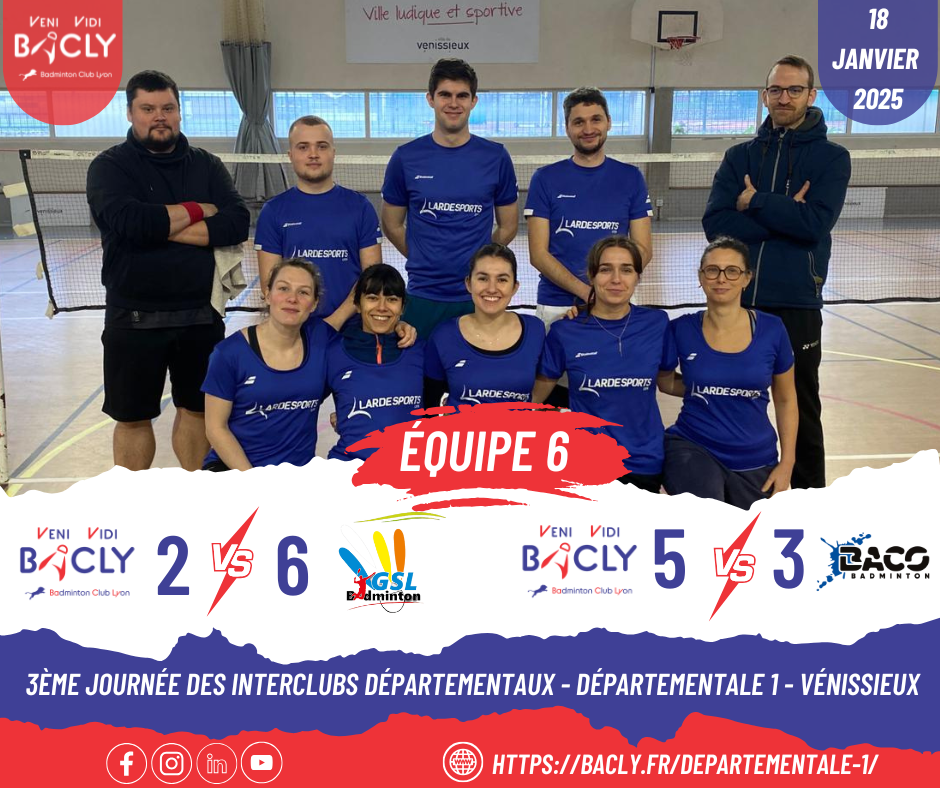 2ème journée de l’équipe 6 à Villeurbanne le dimanche 28 janvier 2024 :