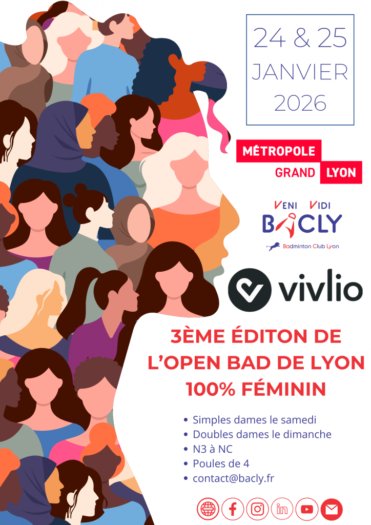 Le BAdminton Club de LYon est très heureux de vous inviter à sa 3ème édition de l’Open Bad de Lyon : 100% Féminin de N2 à NC !