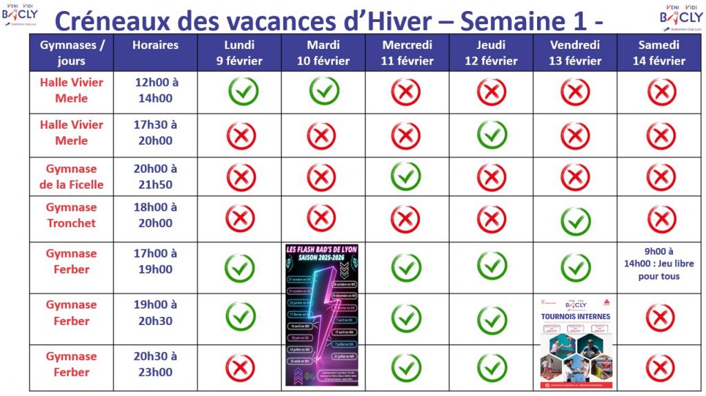 – Jeudi 12 & 19 février 2026 : Ouverture de la Halle Vivier Merle de 17h30 à 20h00 sur 4 terrains pour rencontrer des nouveaux adhérents du club