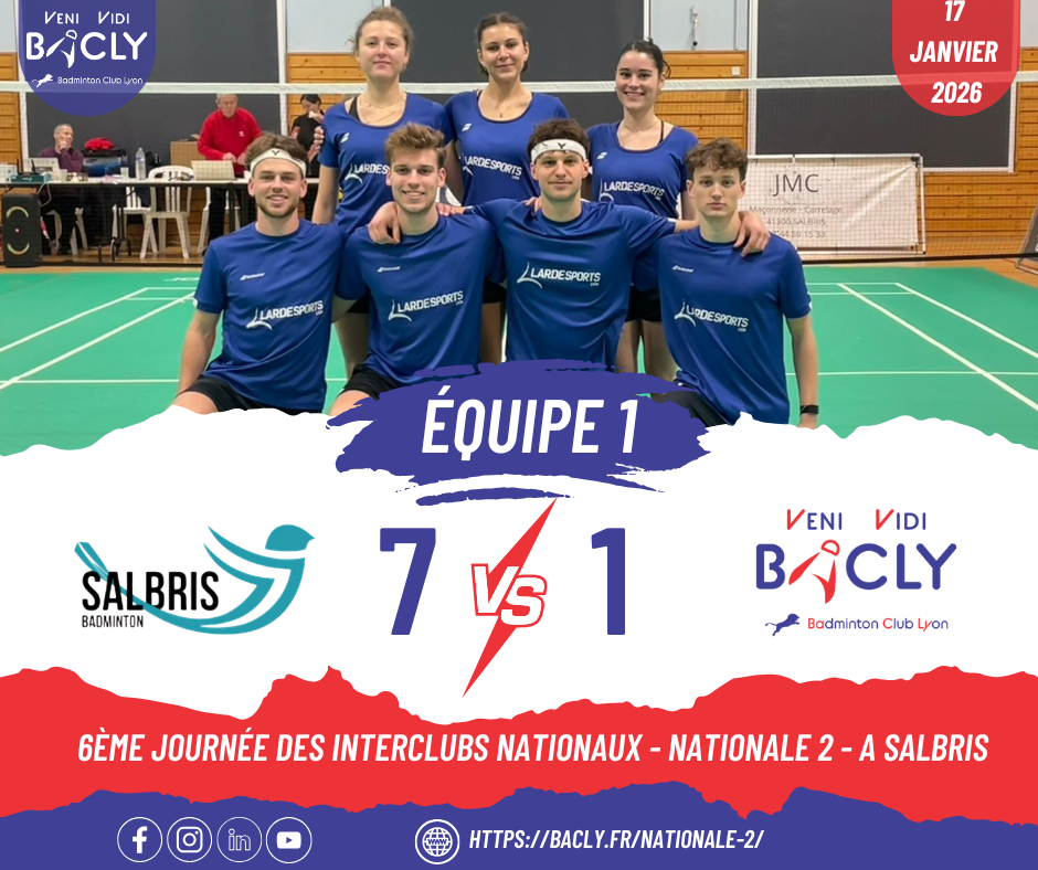 L’équipe 1️⃣ du BACLY – Badminton Club de Lyon connait maintenant ses adversaires pour le championnat de France 🇫🇷 de Nationale 1 :
