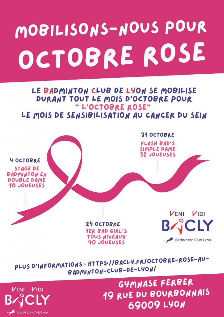 Le Badminton Club de Lyon se mobilise durant tout le mois d’octobre pour “ l’octobre rose ”