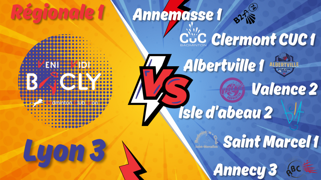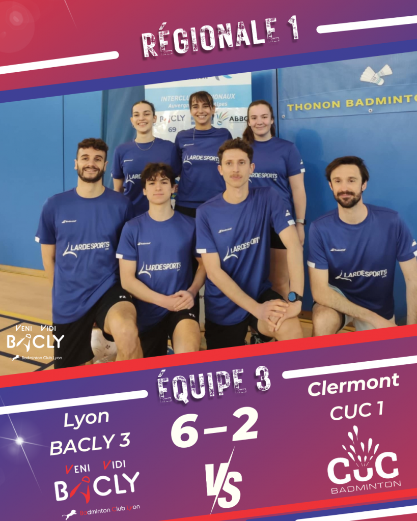 • L’équipe 3 du BACLY en régionale 1 sera confronté au CUC : Clermont Universitaire Club 1 le samedi 3 mai 2025 à 15h00 à Chambéry