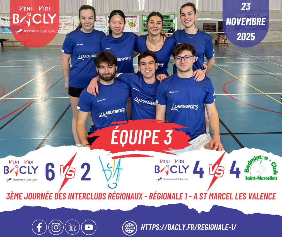Résultats de la 3ème journée de l’équipe 3 du BACLY à Saint-Genis le dimanche 11 décembre 2022 :