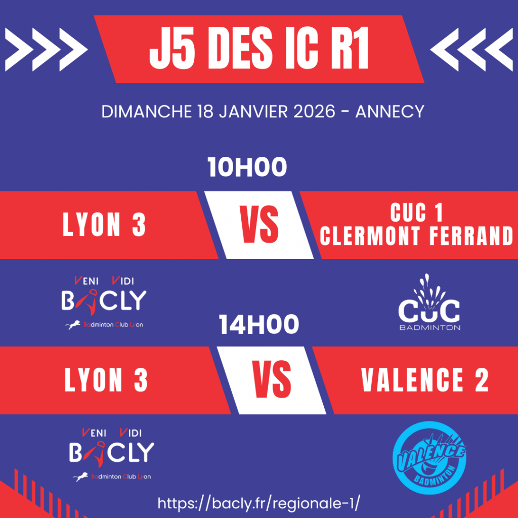 - 14h – Vs le Thonon Badminton Club 1 – Rencontre à suivre : ICBaD
