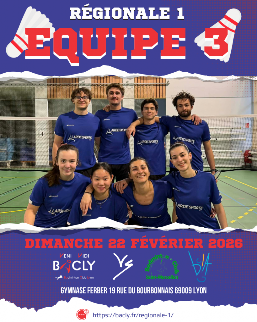 L’équipe 3 du Badminton Club de Lyon jouera pour cette nouvelle saison 2021 / 2022 en Régionale 1