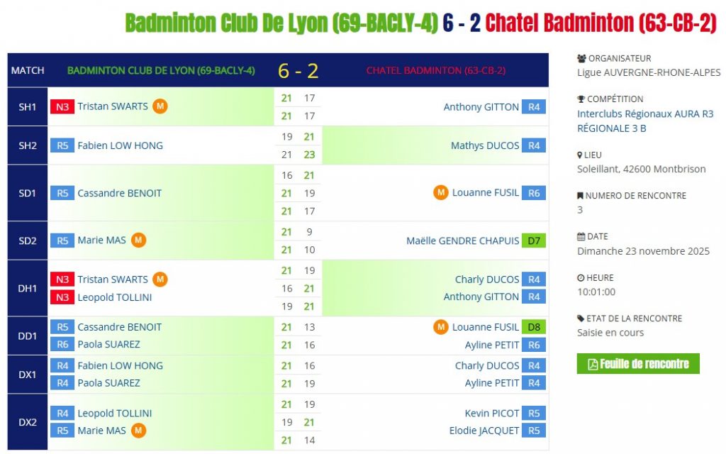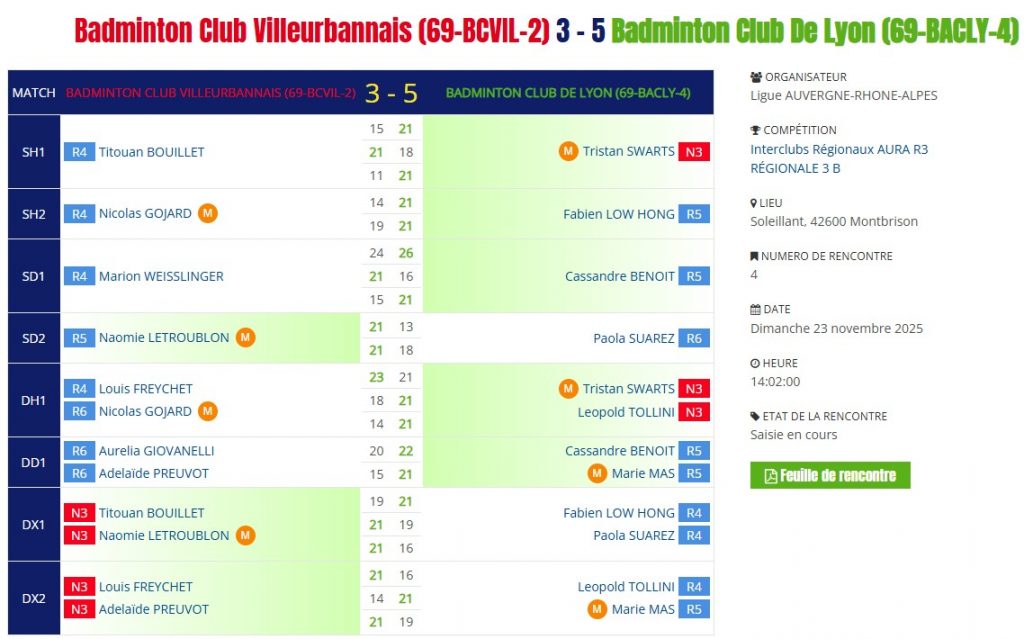 • VS contre le MBC 42 : Montbrison Badminton Club 2