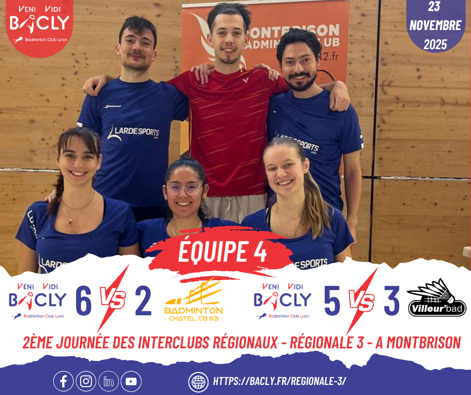 Résultats de la 3ème journée des interclubs pour l’équipe 4 du BACLY en régionale 2 le 12 décembre 2021 à Lyon au gymnase Ferber :