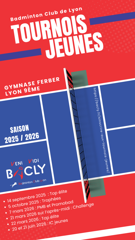 Les tournois » Jeunes » du BAdminton Club de LYon de la saison 2025 / 2026 :
